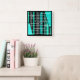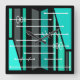 Atomic Abstract Geometric Art Black Turquoise Square Wall Clock
