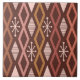 A retro 1950s art pattern with geometric hollow diamonds and atomic era style stars. Multicolored colors include burnt orange, burnt umber, brown, , maroon, mahogany, ochre, and pink.