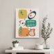 Playfully retro, this abstract design with abstract shapes and atomic age elements like starburst and boomerangs is a stylish way to add a little mid-century flair to any space.