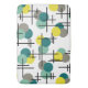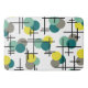 A retro atomic era inspired pattern with teal, turquoise, gray and yellow molecule circles, along with mid century modern styled bold lines.