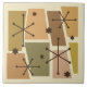 This 1950s midcentury modern vintage abstract art has wonky geometric rectangles with lines that make sputnik starbursts. Colors are earth tones of light brown, beige and tan.