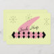 50's style Retro Invitation with Pink and Black Argyle pattern, Pink Boomerang, and Green stars/atoms. Let's go back to the Fifties and Mid Century Modern. This design is very customizable. Each element is a separate image. They have been resized but are quite large and can be sized as you with, moved, rotated, or removed. Background color can be changed. Personalize with your favorite photos, artwork or text.