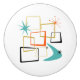 Add that splash of fun and color to your dresser drawer or nightstand with this fabulous atomic era mid century modern ceramic knob. This design features abstract squares, starbursts, and a boomerang in the colors of orange, turquoise, yellow, gold, and black...so funky!