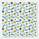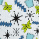 fun and funky atomic shapes in blue, green, and black on a speckled blue background
