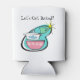 This Atomic Cookware Design Can Cooler will have you saying, “Wow, what an amazing thrift store haul!” The mid century modern boomerang with bright yellow starburst acts as the background for these perfectly kitschy dishes. A jadeite restaurant ware coffee mug, an iconically 1950s lidded casserole dish with cornflower blue floral design, and a marvelous flamingo pink daisy mixing bowl make it the ideal design for vintage collectors, thrift store and garage sale shoppers, or just mid century modern enthusiasts. "Let's Get Baked!" is printed above the adorable design.