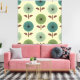 A mid century modern pattern of abstract dandelion flower floaties on a yellow background.