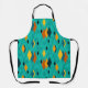 This apron has a mid-century modern atomic design of diamonds, and starbursts on a field of turquoise.