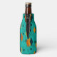 This bottle cooler has a mid-century modern atomic design of diamonds, and starbursts on a field of turquoise. Keep the namw, change it, or delete it completely.