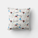 Atomic Era Inspired Pillow Design, Mid Century mobiles style hand drawn by artist. Grey. red, blue and white are the colors of this fabric recreation.