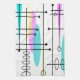 Atomic Era Abstract kitchen towel. Colors and Design in pink, teal blue and pale yellow. Artist duplicated atomic design based on a fabric swatch from the time period.