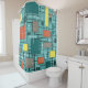 Atomic Era Abstract Lines Boxes Turquoise Shower Curtain