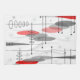 Atomic Era Inspired, Mid-Century Modern design in colors of red, grey and black. Artist recreated atomic design based on a swatch of fabric from that era.