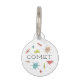 Give your beloved pet a splash of retro charm with our Mid-Century Modern Atomic Era Pet ID Tag. Designed for the discerning pet owner who appreciates the aesthetics of yesteryear, this tag features a delightful assortment of atomic and geometric shapes set against a pure white backdrop, crowned with the bold customizable text where ‘COMET’ is. Not only is this tag a nod to the space-age era, but it's also built to last with a robust metal ring ensuring it stays securely attached to your pet's collar. Practical, stylish, and fun, this pet ID tag is an ideal way to keep your pet safe while celebrating the timeless allure of mid-century design.