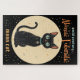 Atomic Futuristic Black Cat Moon with text Jigsaw Puzzle