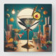 Atomic Futuristic Circuit Board Martini Square Wall Clock