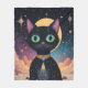 Atomic Futuristic Cosmic Black Cat in Moonlight Fleece Blanket