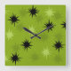 This Atomic Green Starbursts Square Wall Clock has all of the mid century modern fun of your grandma’s kitchen, minus the sticky linoleum. The kitschy design features a green background with gold speckles and randomly placed starbursts in black, and two shades of green. This vintage inspired pattern is mod enough to be stylish and retro enough to be classic. Serve up some love with this minimalist design.