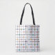 This tote bag has a mid-century modern design of an atomic grid with circles in retro colors. Want a different color? Message me.
