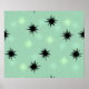 This Atomic Jade and Mint Starbursts Poster has all of the mid century modern fun of your grandma’s kitchen, minus the sticky linoleum. The kitschy design features a jade background with gold speckles and randomly placed starbursts in black, jade, and mint. This vintage inspired pattern is mod enough to be stylish and retro enough to be classic. Serve up some love with this minimalist design.