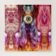 Beautiful, whimsical, surreal and trippy collage of a strange, otherworldly female entity in rainbow colors.