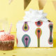 This wrapping paper has a mid-century modern design of atomic lines with "feathers" on either end and an outline around each one.
