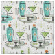 My original vector illustrations of atomic fifties inspired martinis, shakers, olives, and more, in green, pimento, aqua, gray, and black on an ivory background. ©Christine Duffield 2020