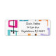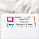 These return address labels have a design of rectangles that are stretched on one end in groovy shades of orange, green, teal, purple, blue, pink, and yellow with atomic lines crisscrossing them.
