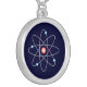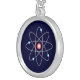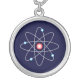 Sterling silver charm necklace featuring an atomic graphic on a dark blue background.