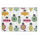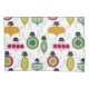 This pillowcase has a mid-century modern Christmas design of ornaments with grey stars layered behind them.