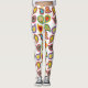 These leggings have a mid-century modern design of paisleys layered on top of each other in retro colors with one layer having an atomic pattern.
