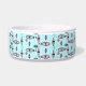 This retro Atomic Pink and Grey Pattern Ceramic Pet Bowl is so awesome it will have you saying, “I can’t believe it’s not barkcloth!” The vintage inspired design is a new take on mid century modern styles. It offers all of the fun of finding a vintage product without having to schlep through antique stores and flea markets. Just when you think it can’t get more perfect, you learn that this whimsical design with its kitschy off kilter shapes in colors of pink, charcoal grey, black, and light grey even offers the option of customizing the background color. We’ve put it on a lovely shade of aqua, but a quick change of the background color, and… Presto! Change-o! The product has gone from subdued to daring! There are dots, starbursts, and diamonds in this piece of modern art. This homage to the 1950s will thrill your retro loving soul.