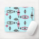 This retro Atomic Pink and Grey Pattern Mousepad is so awesome it will have you saying, “I can’t believe it’s not barkcloth!” The vintage inspired design is a new take on mid century modern styles. It offers all of the fun of finding a vintage product without having to schlep through antique stores and flea markets. Just when you think it can’t get more perfect, you learn that this whimsical design with its kitschy off kilter shapes in colors of pink, charcoal grey, black, and light grey even offers the option of customizing the background color. We’ve put it on a lovely shade of aqua, but a quick change of the background color, and… Presto! Change-o! The product has gone from subdued to daring! There are dots, starbursts, and diamonds in this piece of modern art. This homage to the 1950s will thrill your retro loving soul.