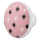 This Atomic Pink Starbursts Ceramic Knob has all of the mid century modern fun of your grandma’s kitchen, minus the sticky linoleum. The kitschy design features a pink background with gold speckles and randomly placed starbursts in black and two shades of pink. This vintage inspired pattern is mod enough to be stylish and retro enough to be classic. Serve up some love with this minimalist design.
