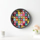 This wall clock has a mid-century modern design of squares with rounded rectangles with antenna in mid-century modern colors. Want the same design in different colors? Message me.