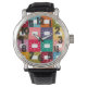 This men's watch has a mid-century modern design of squares with rounded rectangles with antenna in mid-century modern colors. Want the same design in different colors? Message me.