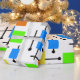This wrapping paper is covered with a mid-century modern design of a variety of retro rectangles connected together. Colorful and fun!