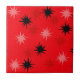 Atomic Red Starbursts Ceramic Tile