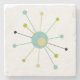 Atomic Starburst Aqua Blue Yellow Mid Mod Stone Coaster
