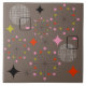 Stylish on trend pattern inspired by retro modern mid century designs with atomic starbursts and funky shapes in tones of orange, pink, green, brown, black and white.