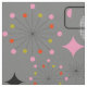Stylish on trend pattern inspired by retro modern mid century designs with atomic starbursts and funky shapes in tones of orange, pink, green, gray, black and white.