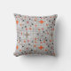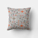 Stylish on trend pattern inspired by retro modern mid century designs with atomic starburst shapes on a white basket weave in tones of orange, grey, black and white