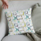 Add a pop of color to your sofa or bed with this funky retro throw pillow. The pattern features abstract squares, starbursts, and a boomerang in the colors of avocado green, aqua blue, yellow, and black. This will liven up your sofa or bed decor!