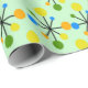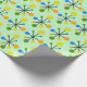 This wrapping paper is covered with a mid-century modern design of retro atomic starbursts on a green background.