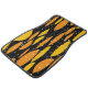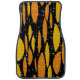 Atomic-style geometric pattern resonates with retro elegance in black and orange.