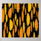 Atomic-style geometric pattern resonates with retro elegance in black and orange.