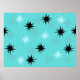 This Atomic Turquoise Starbursts Poster has all of the mid century modern fun of your grandma’s kitchen, minus the sticky linoleum. The kitschy design features a green background with gold speckles and randomly placed starbursts in black, and shades of aqua and turquoise. This vintage inspired pattern is mod enough to be stylish and retro enough to be classic. Serve up some love with this minimalist design.