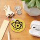 Asymmetrical atom symbol, black or yellow graphic, t-shirts, hoodies, buttons, stickers, cards, gifts.