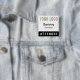 Easily personalize our square attendee name badge with your event logo, attendee name, or other custom text. It attaches with a safety pin back. Designed in black and other colors (all colors are customizable). Our square buttons are 2 inch x 2 inch. Made in USA. No minimum order quantity and no setup fee.