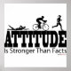 Attitude is stronger than facts triathlon t shirt design. Wear your attitude with this race day t shirt. This triathlon design is also available on triathlon stickers, sweatshirts, buttons and more! You can do anything that you set your mind to. Whether it's Ironman, placing in your age-group, personal records or finishing, Attitude Is Stronger Than Facts! Makes a great gift for under $50.