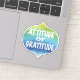 Attitude of Gratitude inspirational saying on a starry blue and green background.